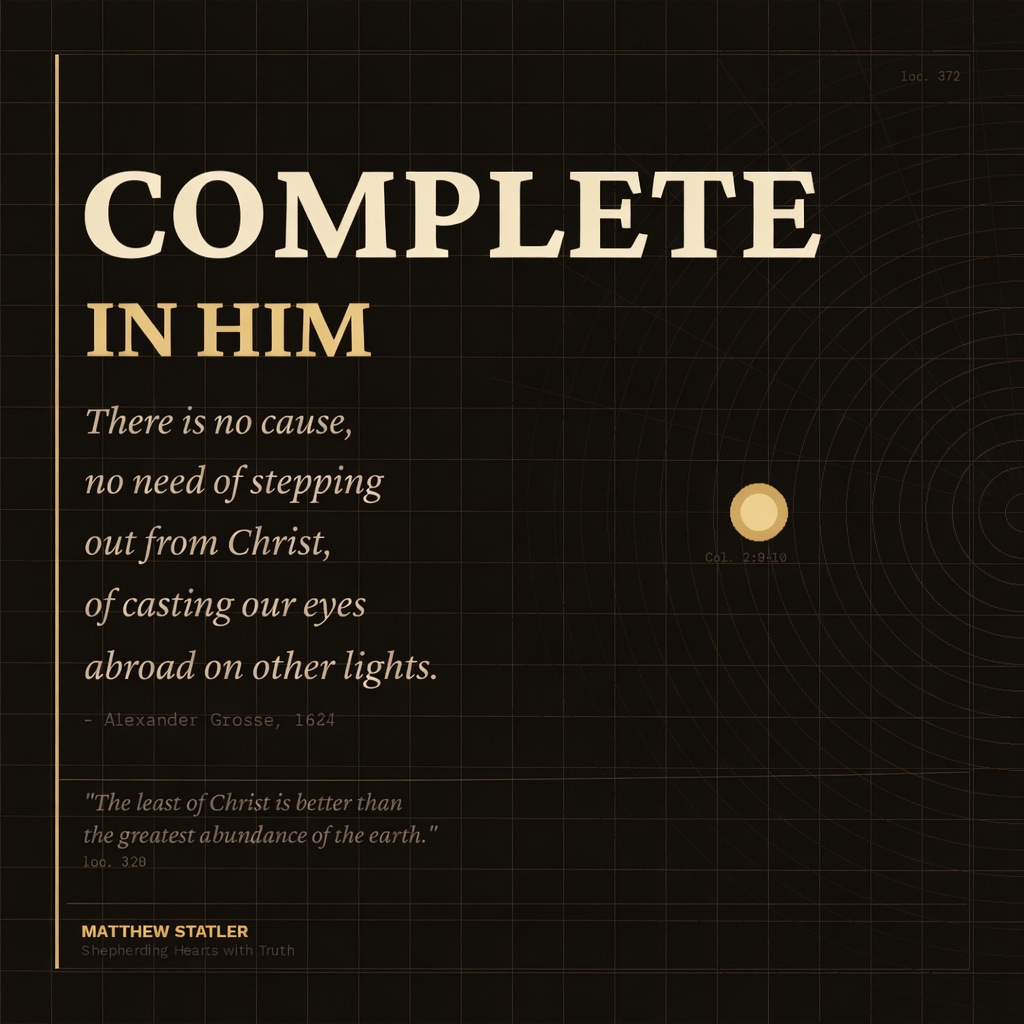 His 1647 work The Happiness of Enjoying and Making a True and Speedy Use of Christ is not widely read today. It should be. Grosse was a Puritan pastor in London, known for scriptural richness and a life that matched his doctrine. He wrote this book to do one thing: convince believers that Christ is not one resource among many. He is the only resource. Everything else is either points to Him or a distraction from Him.